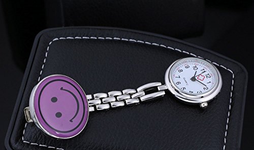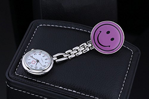 -. Feature : Nurse Watch:Excellent quartz movement ensures the accuracy of the time ideal for infection prevention and control. / Style:Mini and portable ,Lovely purple smile face packet watch gives everybady a good mood everyday. / Easy to wear:Simple Pin clip design lapel watch ,it's convenient to wear. / Size:Total length 83mm Case dial diameter:28mm Case thickness:16mm / Arabic numberals quartz watch.Without a box.