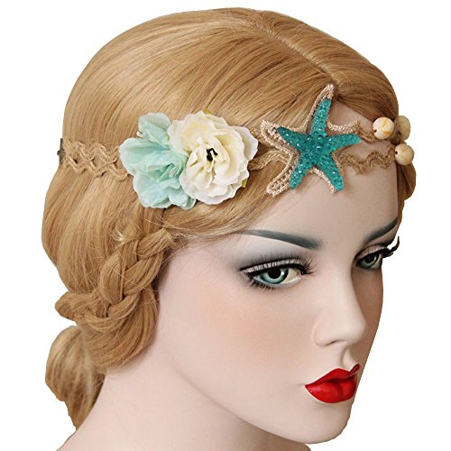Bodermincer Beach Starfish Shell Flower Hemp Rope Headband for Girls Women.Photography props Mermaid Handmade Hair Band(with a gift box)