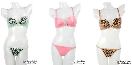 -. Title : グラマラス美乳ブラ&レーシーショーツセット レオパルドミント ピンク レオパルドブラウン 3色組F65(M)