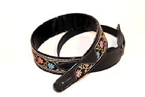 -. Title : Guitar Strap 2" Riverhoot #48 Brown Flower w/ Adj Tail