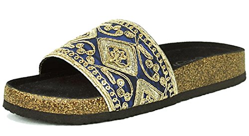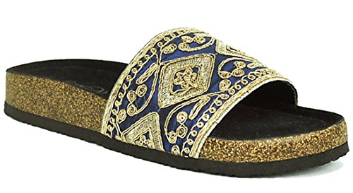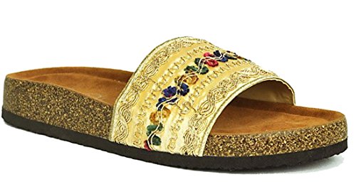Refresh Footwear Women's Embroidered Slip On Platform Slide Sandal