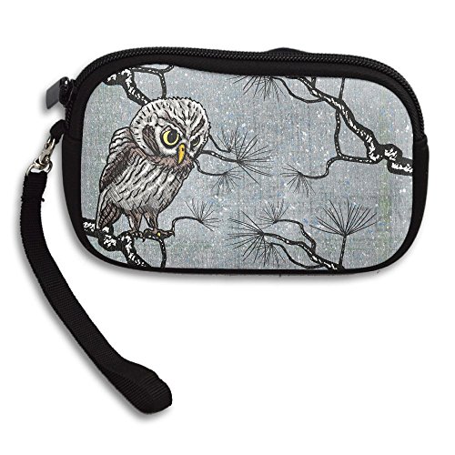 -. Title : Grey Winter Owl Bird Cute Owl Pattern Small Money Wallet Coin Purse Pouch Bag