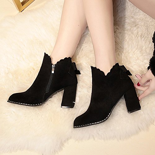 (WKIDWX)/Women's/Boots/DIRECT FROM USA/Women's Shoes PU Winter Combat Boots Boots Low Heel Round Toe Bowknot For Casual Dress Brown Black
