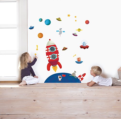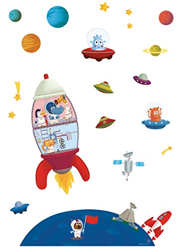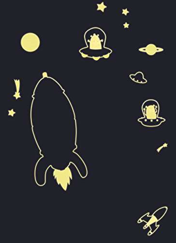 Janod Magneti'Stick Glow in The Dark Rocket Magnetic wall cling! They're out of this world! Provides hours of imaginative playtime fun! Great for decorating your child's room or the playroom. Includes vinyl wall cling plus 19 magnets. Recommended for children ages 3-6.