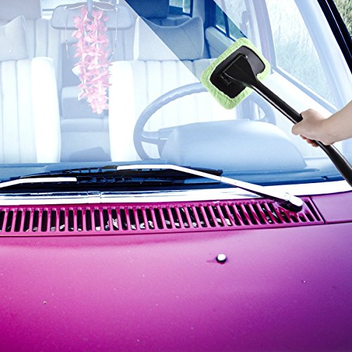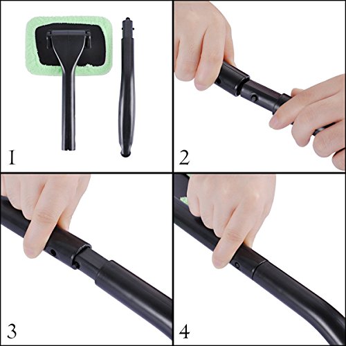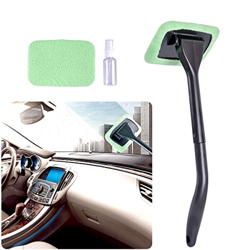 -. Feature : Makes Cleaning Windshield Fast And Easy --- Clean car window interiors and exteriors without straining! No more hurting your back. With the Extra Long 16" extension handle and pivoting head getting to those hard-to-reach car window bases is simple. You get the cleaner and clearer shine every time. / No Chemicals & Clean With Water --- Includes 2 Removable Washable Microfiber Covers. No need for throw away wipes and pads. The covers remove more dirt, dust and tar; cleans using plain tap water. Just throw them in the washing machine to clean. / Easy Using --- Simply slip one of the microfiber bonnets on the head, spray with water, and start washing. / Great For Car Windows And More --- Works great as a fog & moisture removal tool. Use the cleaning brush set in your car, hard to reach windows in your house, television, glass screens, glass mirrors and even floors. / BUY WITH CONFIDENCE --- We know you and your windshield will love our Ideas In Life 5 Piece Windshield Cleaning Kit! Order now to enjoy our 100% Satisfaction Guarantee!