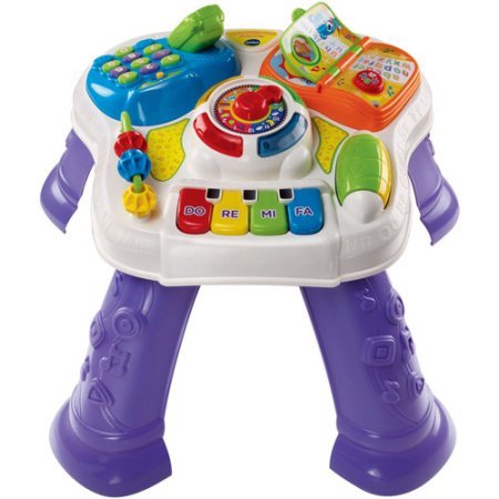 -. Binding : Baby Product -. Feature : Baby's first phone with a removable handset and number pad teaches numbers and role play / Baby activity table teaches alphabet and shapes / Fun piano keys introduce your baby to music and colors / Baby activity table offers two ways to play, growing with your child / Use on table or floor -. IsAdultProduct : 0 -. Label : VTech Walker -. Manufacturer : VTech Walker -. ProductGroup : Baby Product -. ProductTypeName : BABY_PRODUCT -. Publisher : VTech Walker -. Studio : VTech Walker -. Title : VTech Learning Walker (Learn & Discover Table)