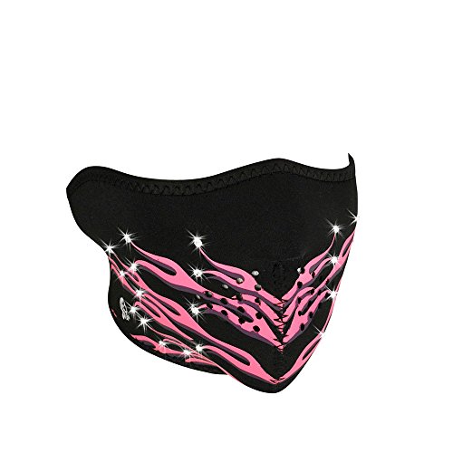 -. Title : ZANheadgear Neoprene Half Mask with Highway Honey Pink Flames and Rhinestones Design (Multi Color, One Size)