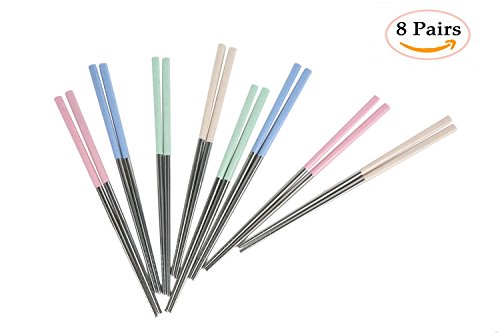 E-FirstFeeling Stainless Steel Chopstick 8 Pairs Reuseable Chopsticks Set in 4 Colors