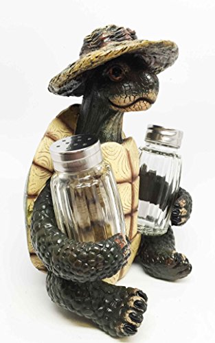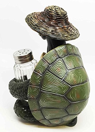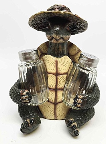 COUNTRY GREEN TURTLE SOUP SALT PEPPER SHAKERS HOLDER FIGURINE STATUE