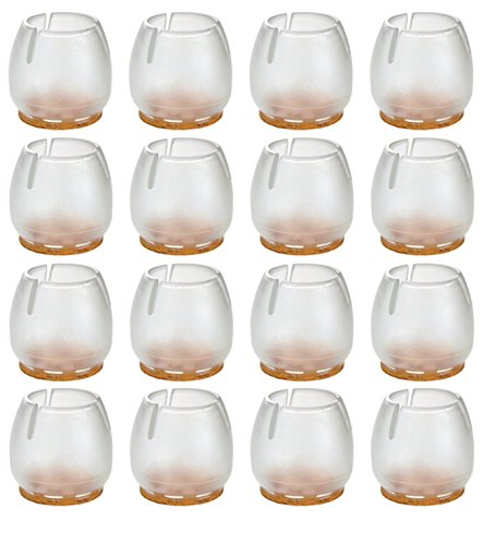 Bloss Chair Leg Feet Wood Floor Protectors Set, Felt Pads, 1 to 1-1/8 Inch Round - Clear 16 Pack