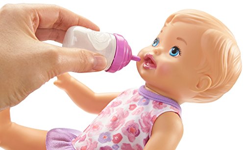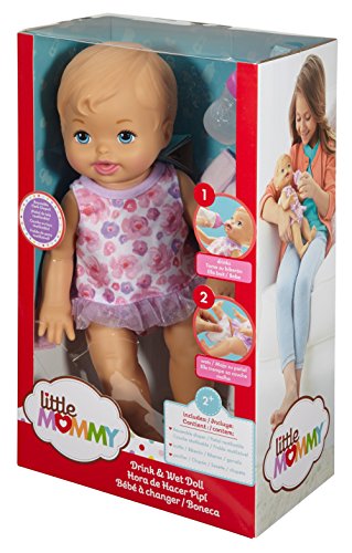 Now your little one can learn to feed and change her baby with the Little Mommy Drink and Wet doll