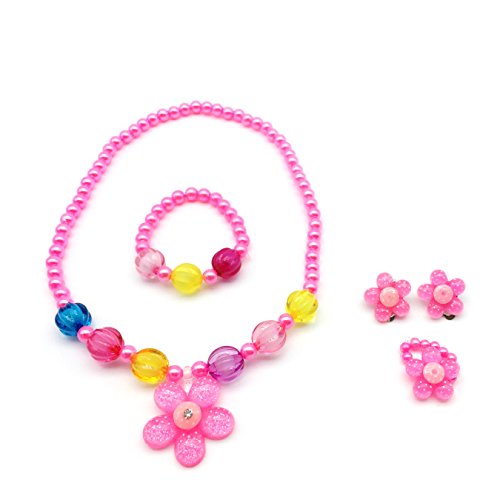 Elesa Miracle Girl Party Favor Pretend Play Princess Pink Pearl Jewelry Value Set - Necklace, Bracelet, Earrings, Ring