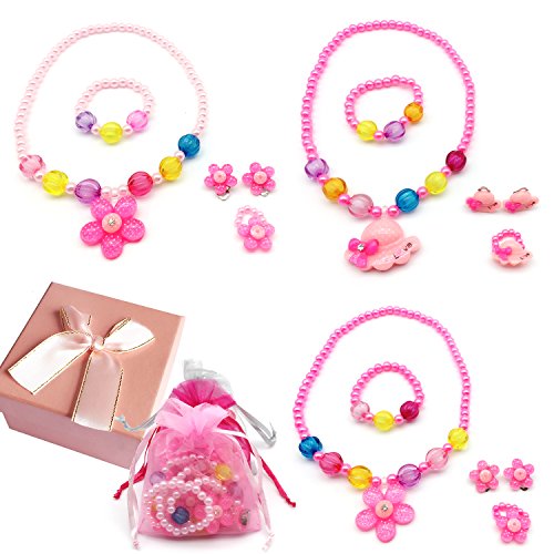 Includes 3 sets of matching jewelry; Each set features 1 necklace, 1 bracelet, 1 pair of clip-on earrings, 1 ring