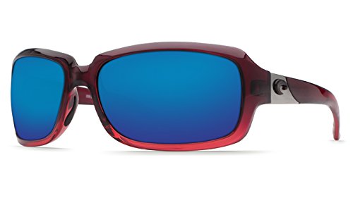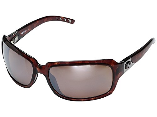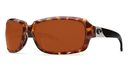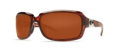 Costa Del Mar Sunglasses, style Isabela is an oversize Rx-able rectangular nylon sport wrap with polarized glass lenses. The Isabela is designed with corrosion-resistant stainless steel hinges, adjustable wire core temples and special materials on the saddle nose bridge and temples to ensure comfort and minimize slippage. The Costa Del Mar logo is engraved on the temples. These Costa Del Mar Sunglasses have lightweight polarized glass lenses that provide amazing clarity and 100% UV protection.Feature