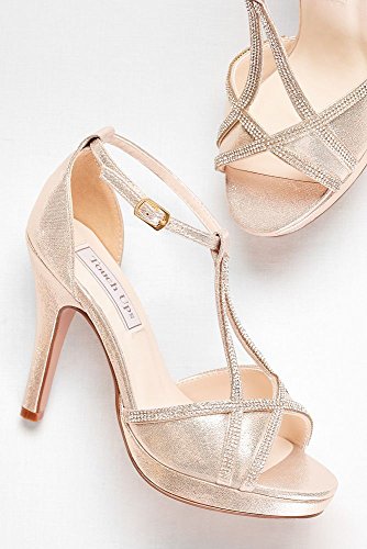 Product Description Sophisticated and strappy, these metallic platform heels dress up any outfit. By Touch Ups Synthetic 4" heel with 0.5" platform Adjustable buckle Imported 0