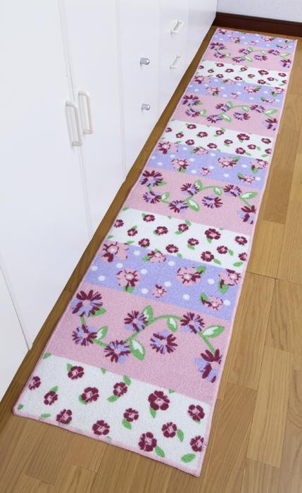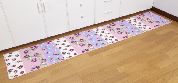 花柄が素敵でキッチンマットを変えるだけで、華やかに模様替え♪裏面に滑りにくい加工を施しているので、横ズレしにくいです!!