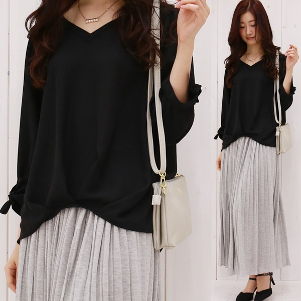 トレンドファッションがこれ一枚で完成 ボウタイ付き袖リボンVネックプルオーバー