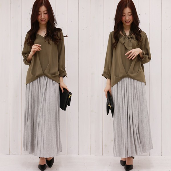 大人っぽいラフな雰囲気でこなれたスタイルを演出。 ボウタイがさりげないオシャレ感をプラス