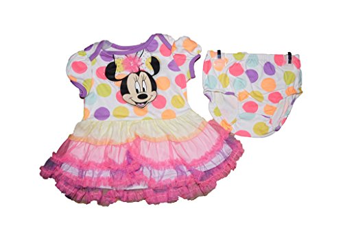 -. Title : Disney Minnie Mouse Big Face Ruffled Dress and Diaper Cover Set - Pink White