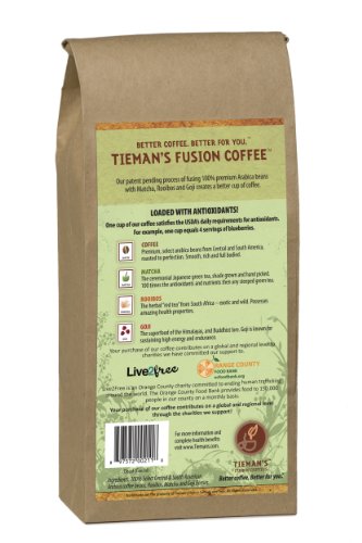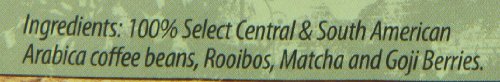 • 100% Arabica coffee beans with Matcha Green Tea, Rooibos Red Tea and Goji Berry.