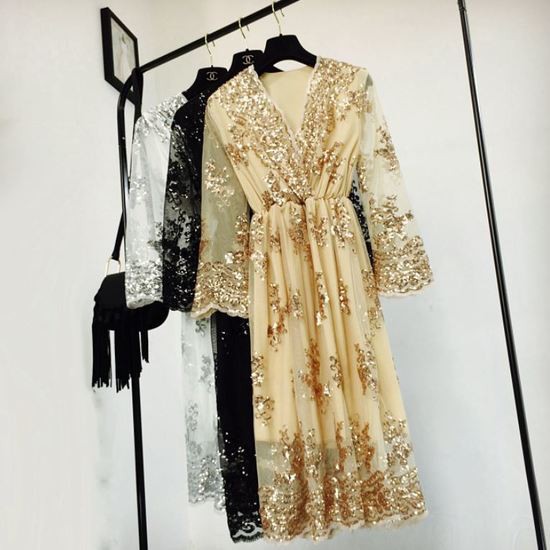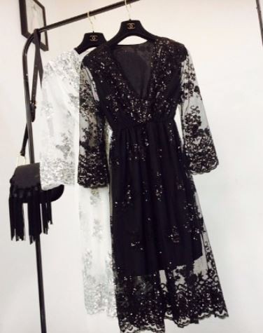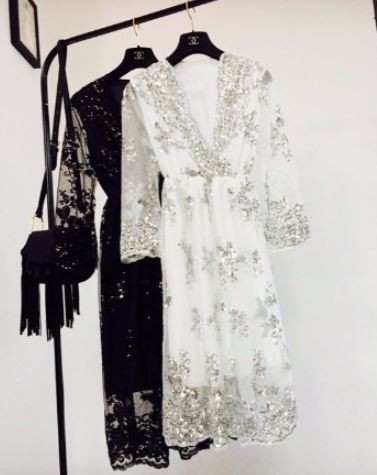 Vネックと刺繍がポイントで女性らしさを引き立ててくれます。