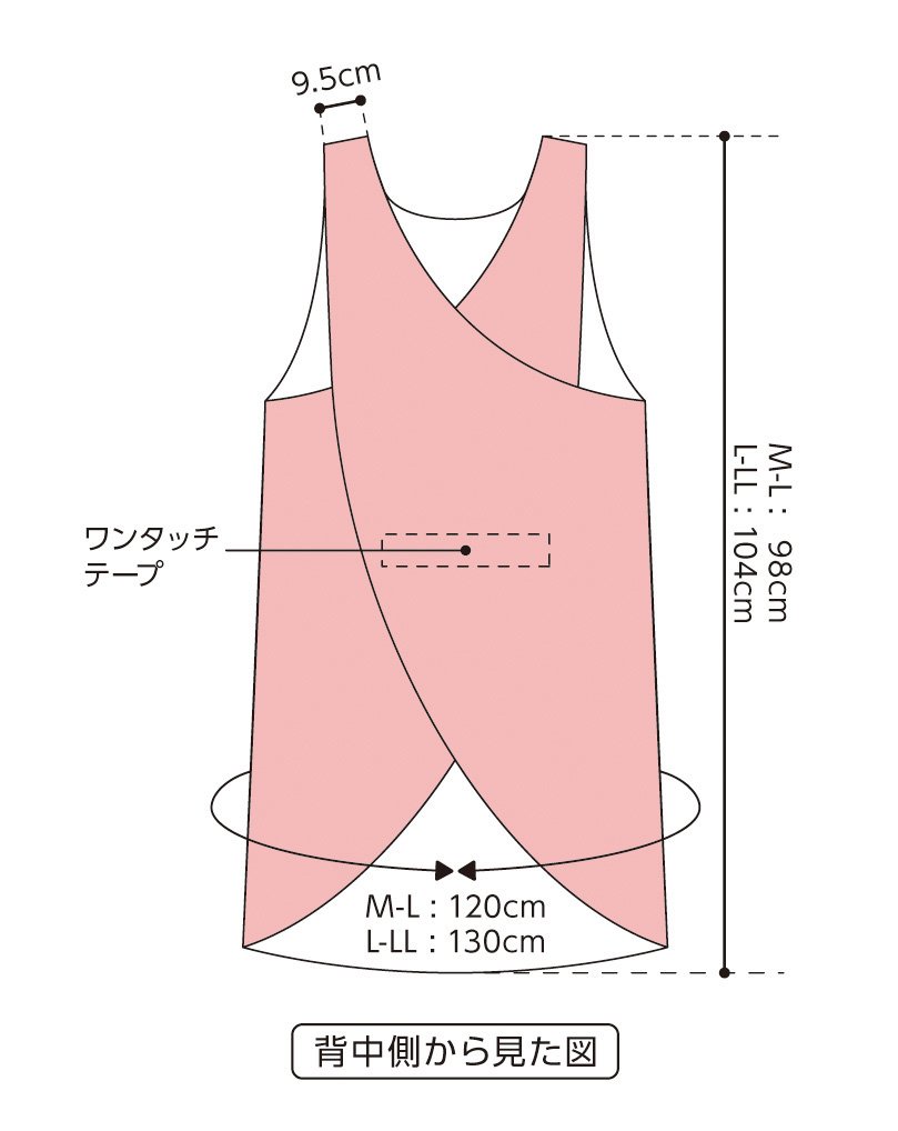· It is one touch tape on the back, making it difficult for the apron to deviate earlier even when bent forward, making it easier to assist.