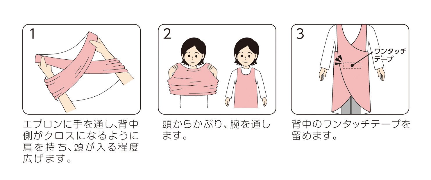 (1) Hands over the apron, holds the shoulders so that the back side becomes a cross, and spreads it to the extent that the head enters.