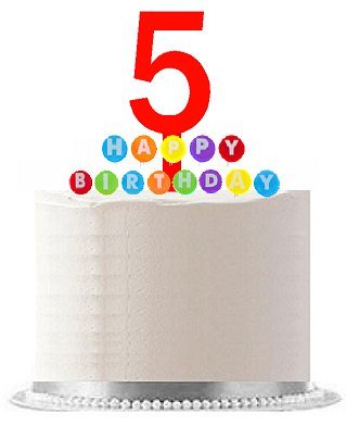 Item#005WCD - Happy 5th Birthday Party Red Cake Topper & Rainbow Candle Stand Elegant Cake Decoration Topper Kit