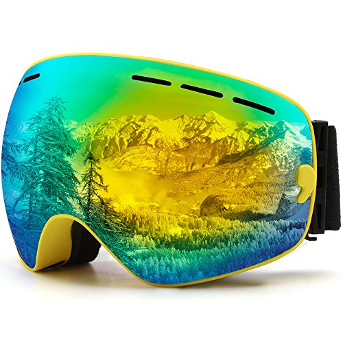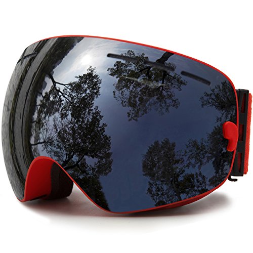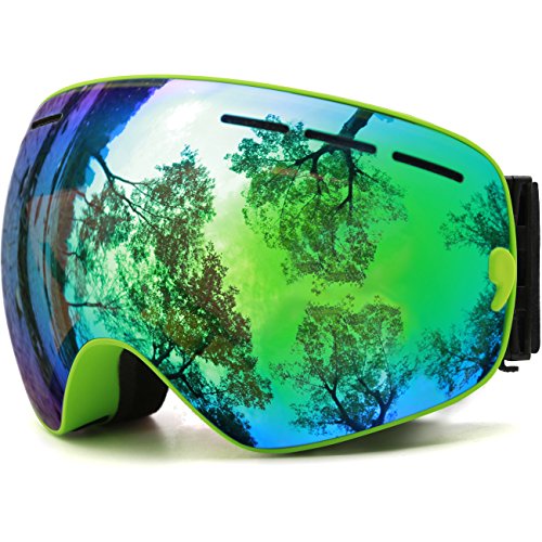 Professional Ventilation & Frameless DesignDesigned to reduce fogging and optimizes the flowing air over the inside of the lens.Ski goggles provide smooth air-flow system which brings fresh air and exhaust moisture quickly and effectively. The big, spherical, frameless lens provides a truly unobstructed & clear view of the slopes.