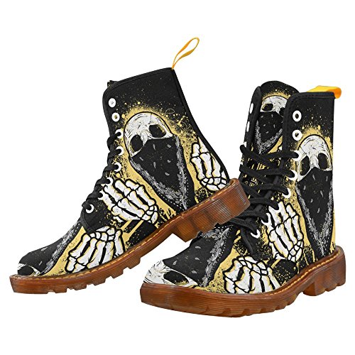 | (InterestPrint)/Men's/Boots/DIRECT FROM USA/InterestPrint Skull Flips The Bird Print Lace Up Boots For Men |