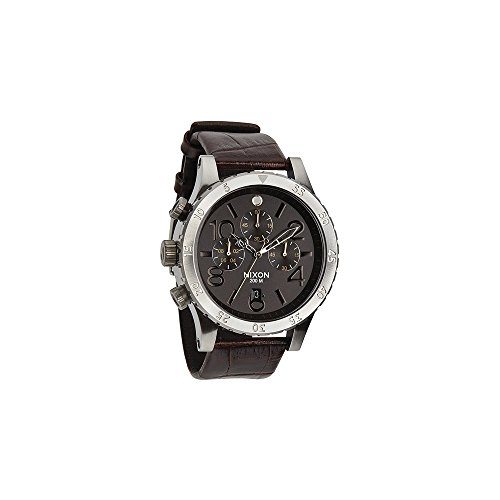 Much like high-end German sports cars, the Nixon 48-20 Chrono Leather Watch is housed within a sleek and sophisticated housing, made of stainless steel for enhanced strength, corrosion resistance, and a solid overall feel. Taking bold design cues from racing instrumentation, this watch features go-fast styling for those with a taste for well-executed aesthetics. A leather strap adds a dignified look that's chock full of character. Japanese-made, six-hand quartz movement is accurate to 1/20th of a second, giving precise timekeeping for those on the go. A unidirectional, rotating bezel acts as a countdown timer, and three chronographs keep you on the ball and informed. Additional noteworthy features include 200 meter water-resistance, date indicator, and textured subdials.Feature