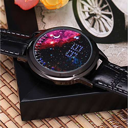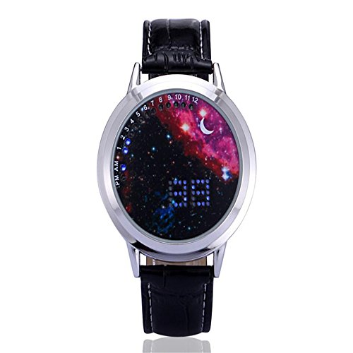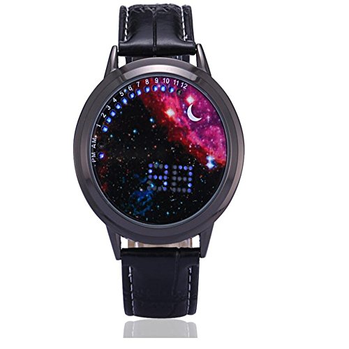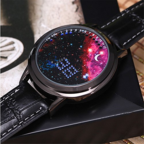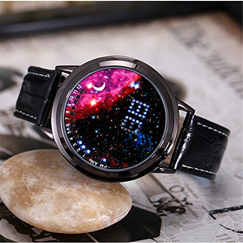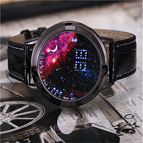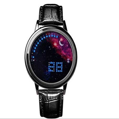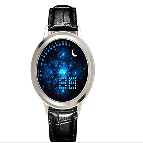 Main Function: Japanese-inspired blue LED digital touchscreen watch Screen: Circumferential blue and white LED encircling the mouth of The Abyss! Bracelet: - Color: Black - Material: Snake skin textured leather - Length: ~ 250 mm with 7 holes for wrist adjustment Clasp: Buckled Function Button (Touchscreen): display and changing hour and minute data Settings: Hours, Minutes Power: CR2016 (x1) pre-installed Manufacturer Ref: A8BST6X7U7QY Introducing The Abyss, a minimalist Tron blue and white Japanese inspired LED watch from the last syllable of recorded time which gives its wearer the ability to gaze into the abyss and thereby come face to face with the true nature of his or her own being. Time adjustment: Touch to activate a second screen after let go, and then click on the screen about 6 seconds, while waiting for the clock quickly flashing or move to loosen, then, you can click again to adjust the time, the clock adjust, after waiting for 5 seconds, automatically adjust to the minutes of operation, at this point, the minutes will be rapid flashing, then adjust the minutes as the steps in accordance with the adjust clock, adjust, loosen, wait 5 seconds automatically lights out, the time is in tune. Please refer to the attached manual for details.