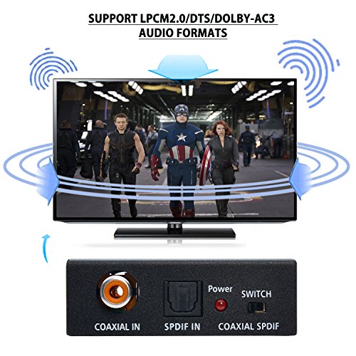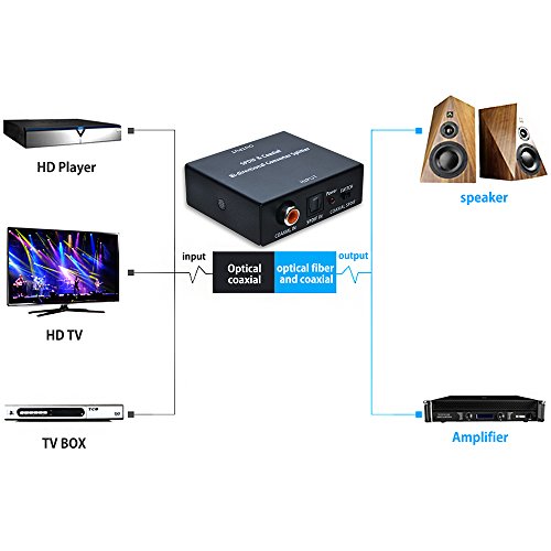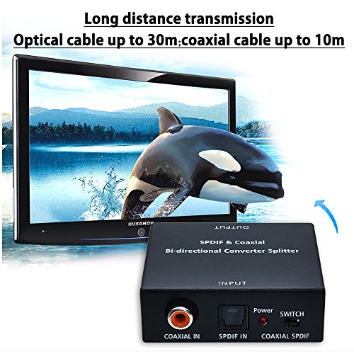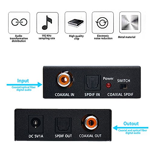 AGPtEK SPDIF Toslink to Coaxial Converter/Coaxial to Toslink Converter Bi-Directional Optical 2-Way Digital Audio Adapter Repeater/ Switcher Signal Amplifier Splitter