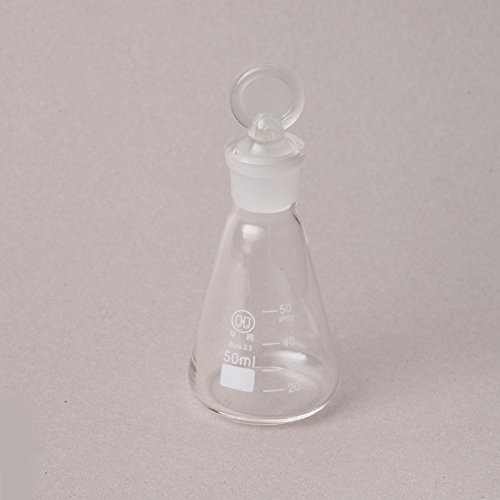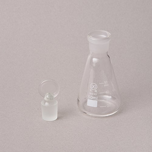 Huaou 50ml Laboratory Chemical Boro Glass Erlenmeyer Conical Flask with Solid Stopper