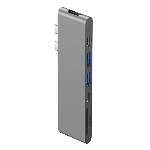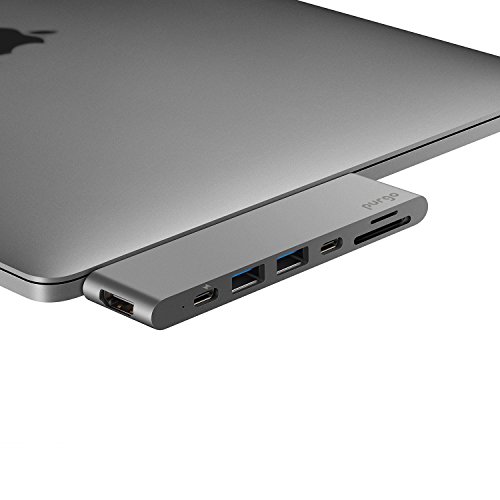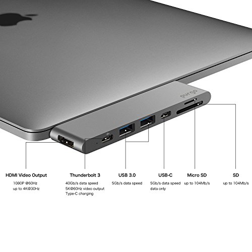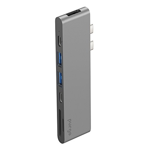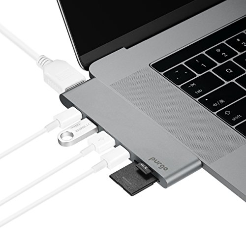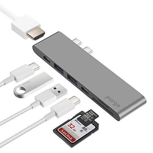 Purgo USB C Hub, Aluminum Type-C Hub Adapter Dongle for 2016/2017 MacBook Pro 13"&15" 4K HDMI, 40Gbs Thunderbolt 3 5K@60Hz, USB-C Data, 2 USB 3.0 and SD/Micro Card Readers (Space Grey)