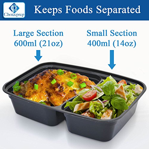 2 COMPARTMENT (38oz) CONTAINER - Our Food Storage Containers Have Two Compartments Measuring 600ml (21oz)and 400ml (16oz). Perfect for Portion Control Diets!