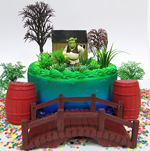 SHREK Birthday Cake Topper Set Featuring Shrek Cake Topper Figure and Decorative Accessories