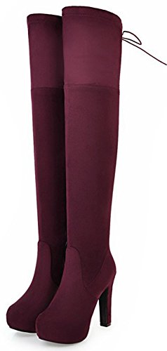 (Mofri)/Women's/Boots/DIRECT FROM USA/Mofri Women's Sexy Chunky High Heel Hidden Platform Round Toe Faux Suede Side Zipper Thigh High...