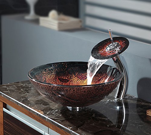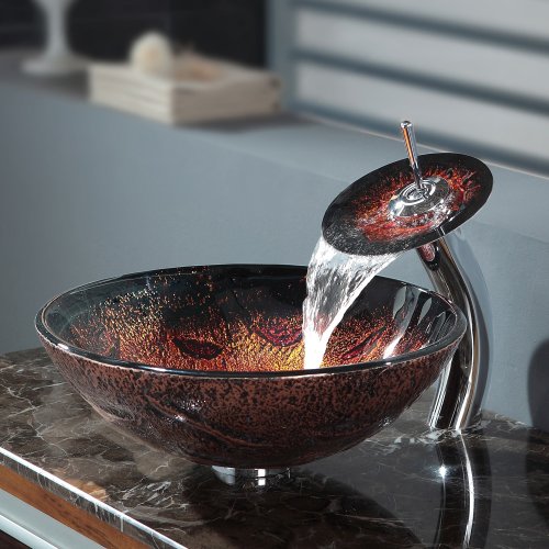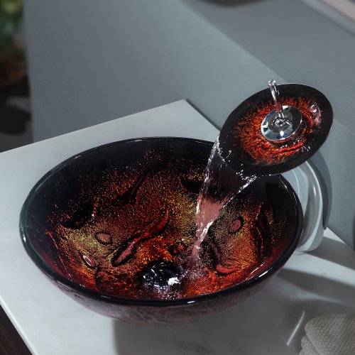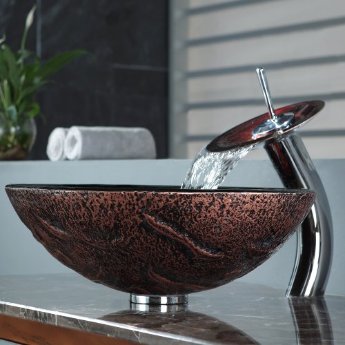 Kraus C-GV-710-12mm-10CH Lava Glass Vessel Sink and Waterfall Faucet Chrome