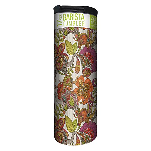 Tree-Free Greetings Elephant and Flower Pattern Vacuum Insulated Travel Coffee Tumbler, 17 Ounce Stainless Steel, Gift for Animal Lovers (BT21954)