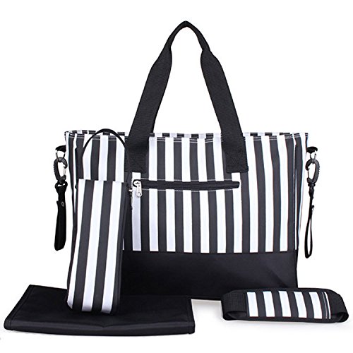 You've been looking for a right diaper bag. STYLISH! - The thin stripe cotton canvas is fun, playful and totally on-trend at the moment. SPACIOUS! One of the largest diaper bags on the market (without being too bulky) and is easily big enough to fit all of your mom (or dad) essentials for your baby girl or boy (or even twins!) FUNCTIONAL! - There are a total of 9 internal and external pockets - including zipper secured main and back pockets, 3 Interior compartments and 2 adjustable bottle pockets UNISEX - Mothers love feeling like the are carrying a chic designer tote more than a changing bag... dads are happy to be seen in public with it, while on daddy duty! AFFORDABLE - Considering the high quality of the material, components, finishing and overall design it is exceptional value for money. Includes a funky matching changing mat and stroller straps VERSATILE - This is the type of bag you would be equally happy to use as a diaper bag or just as an everyday tote. COMFORTABLE - Use the adjustable strap to wear it like a crossbody bag or throw it over your shoulder. Any quality problem within 7 days or you don't like it, 100% satisfaction guarantee. Enjoy!! 0 |