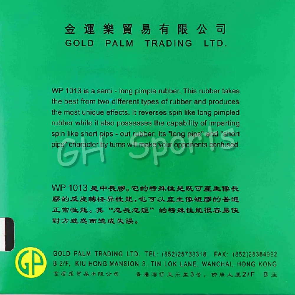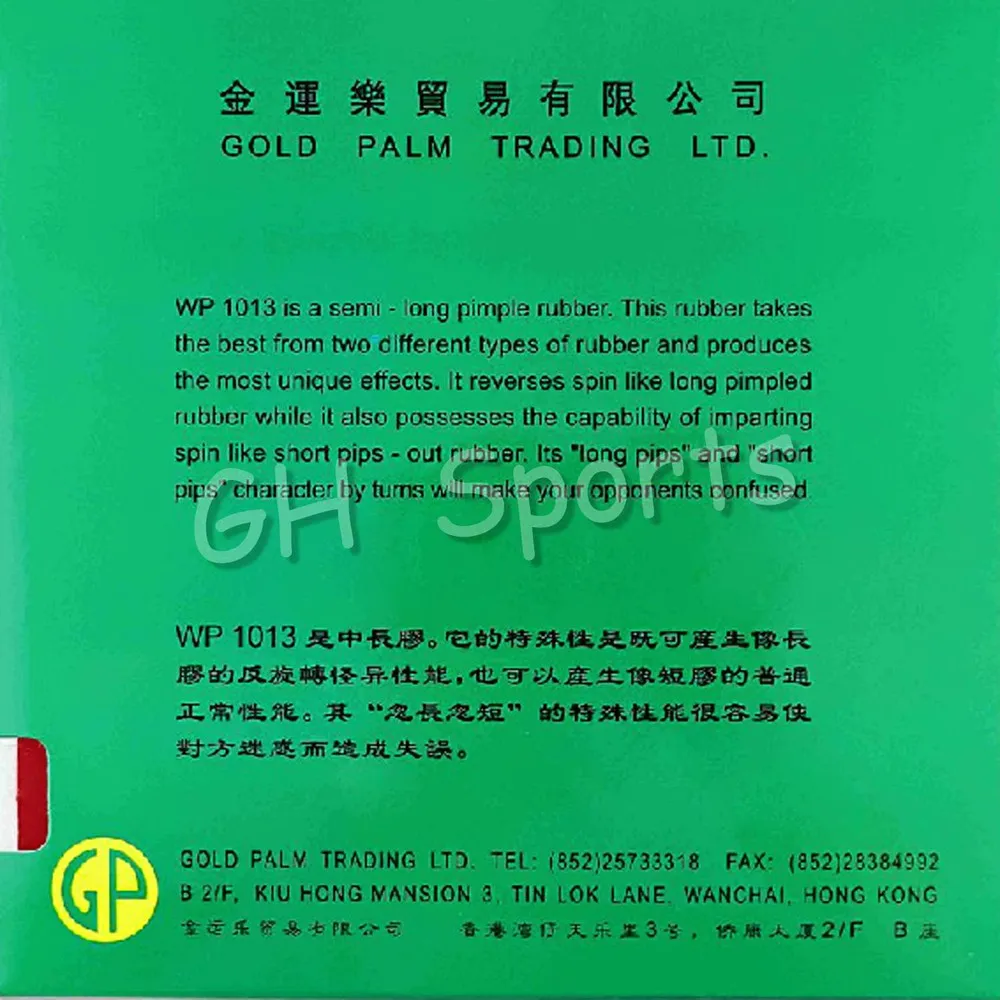 Model Number:WP 1013 Half-Long Pips-Out (No Sponge)