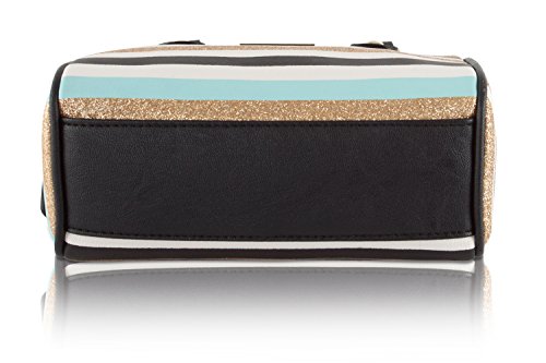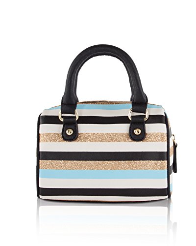 Betsey Johnson Harlie Mini Satchel Crossbody Bag - Blue Gold Stripes