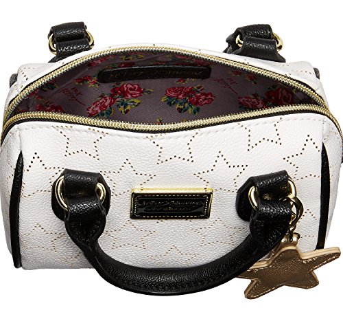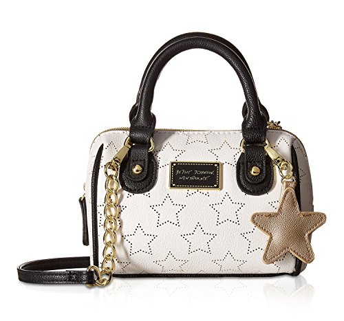 Betsey Johnson Perforated Star Mini Small Crossbody Satchel Bag - Bone/Black