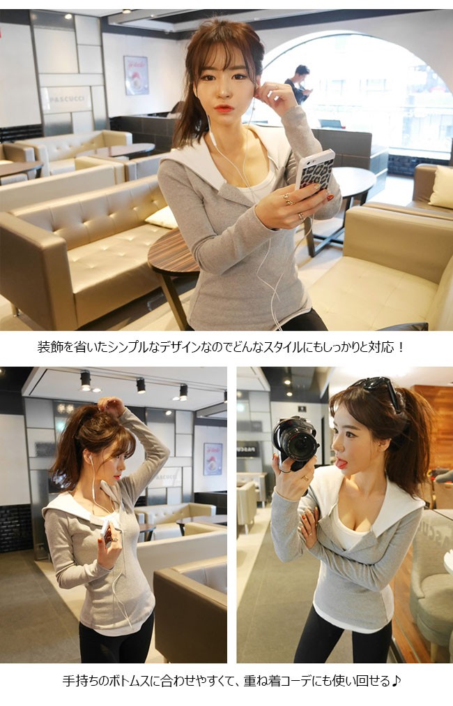 | 商品名 | フェイクレイヤード 秋冬シャツ 切り替えシャツ インナーシャツ レディース カットソー フード付き トップス 着痩せ 2017秋冬新作 |
