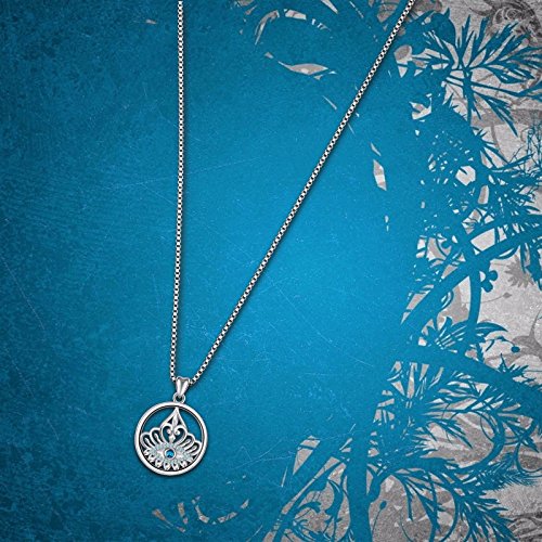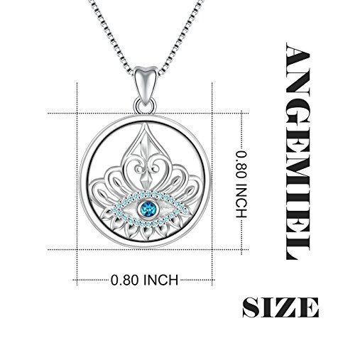 -. Title : 925 Sterling Silver Evil Eye Hamsa Hand Fatima Good Luck Blue CZ Vintage Pendant Necklace, Box Chain 18"