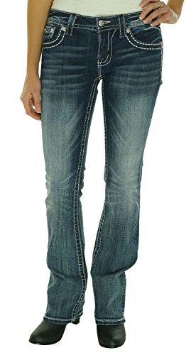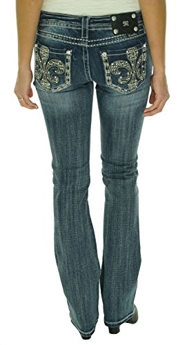 Double stitch embroidered fleur de lis back pocket with rhinestone detail