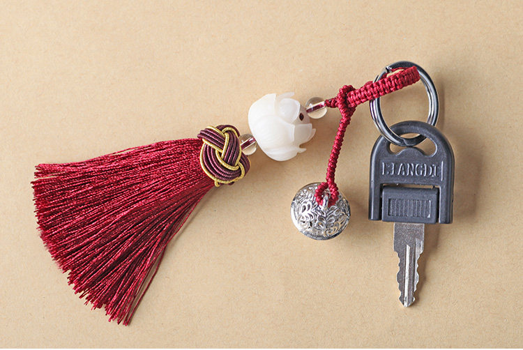 菩提根莲花莲蓬宫铃流苏钥匙链男女士情侣包包汽车钥匙扣挂件可爱