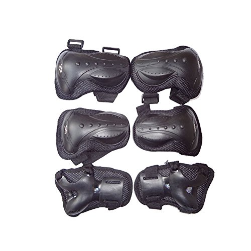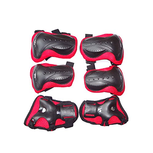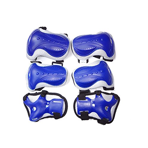 -. Feature : Has 2 x wrist pads,  2 x elbow pads,  2 x knee pads. / Material: mesh + PE + EVA + high-risk bubble. / PE protective cap. / Abrasion resistant polyester. / Perfect for mutiple sport---- Bicycle, skate roller and so on.