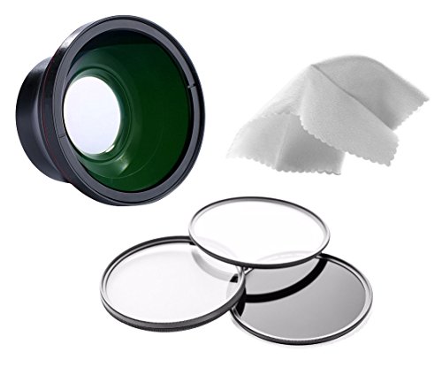 Sony FDR-AX100 0.43X High Definition Super Wide Angle Lens w/ Macro + 62mm 3 Piece Filter Kit + Stepping Ring 62-58 + Nwv Direct Micro Fiber Cleaning Cloth